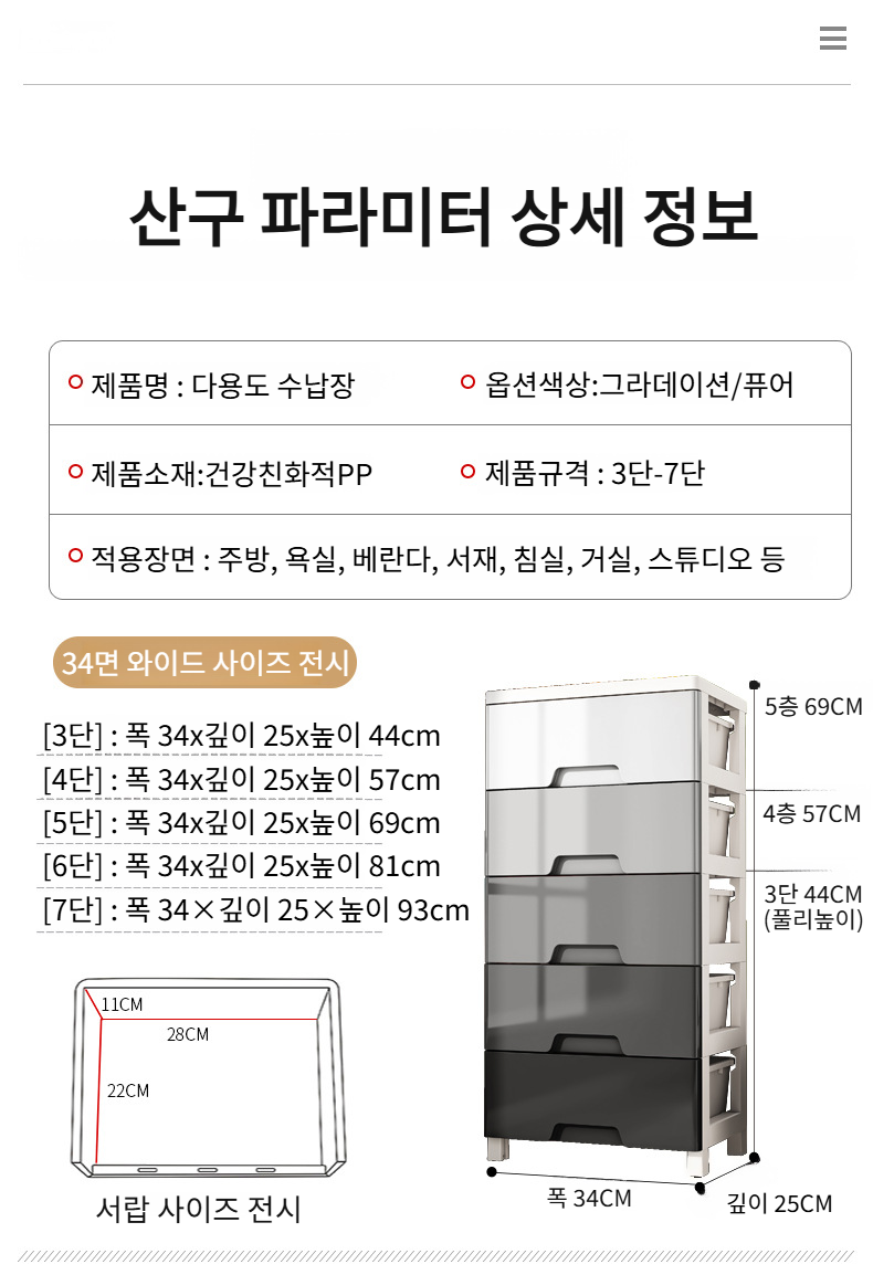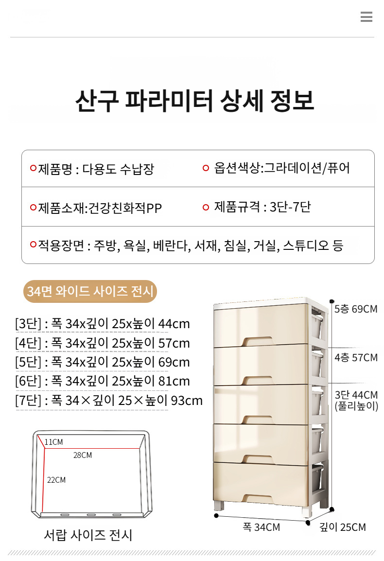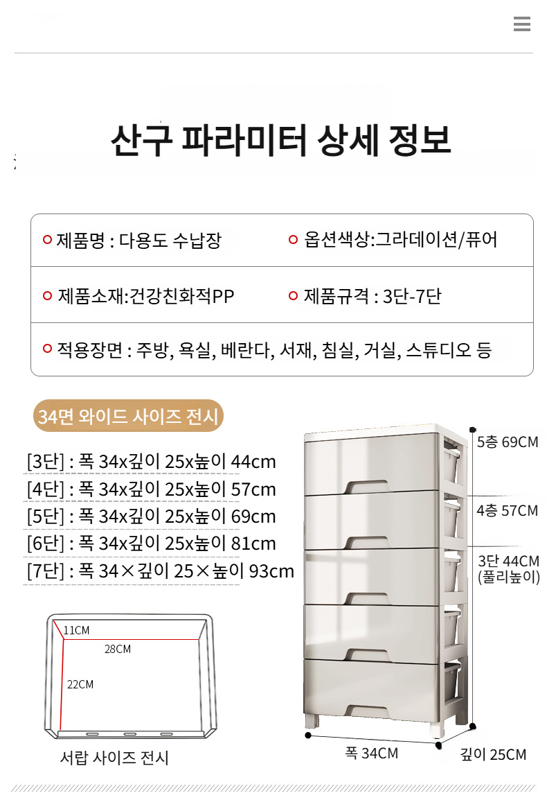 와이드 대용량 가정용 플라스틱 수납장 거실 침실 옷 장난감 수납장 서랍형 잡동사니 수납장